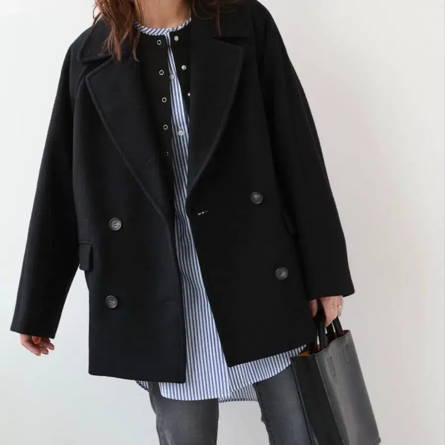 저널 스탠다드 리룸 비슈 울 숏 P 코트 블랙