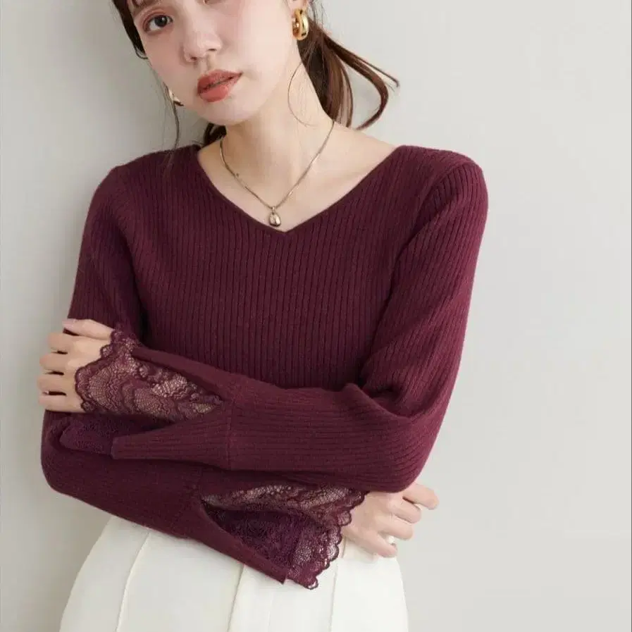 인기 리바이벌 아이템! 소매 레이스 리브 니트