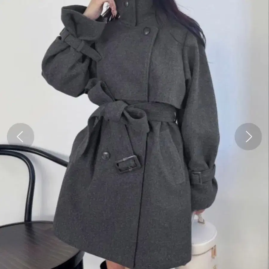 NICE CLAUP 2WAY 스탠드 카라 미들 코트 차콜 그레이