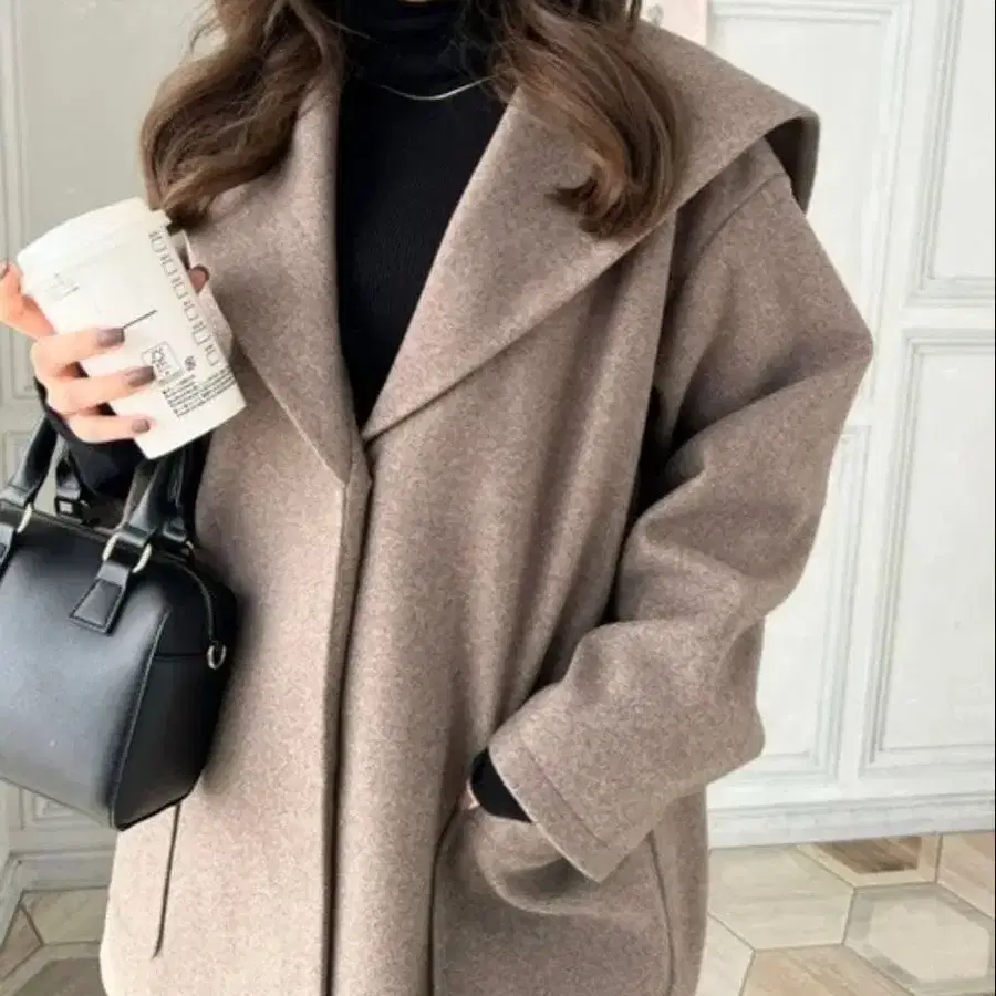[moment+] 라이트 니트 멜톤 빅 칼라 미들 코트 (안감 부착)