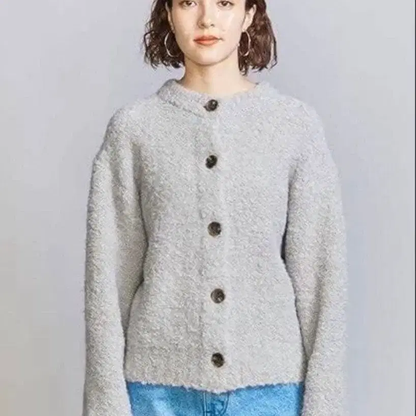 BY 울 알파카 블렌드 부클 니트 가디건 그레이