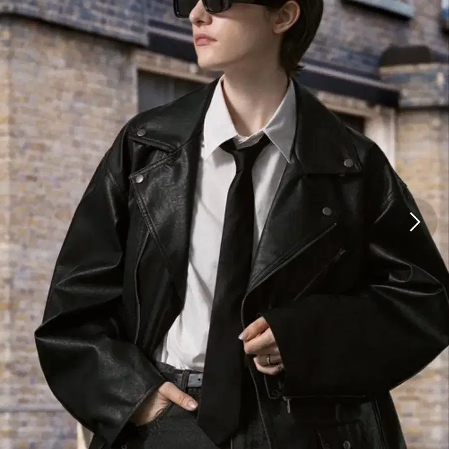 ENDER PRODUCTS 오버 사이즈 블랙 가죽 라이더 자켓
