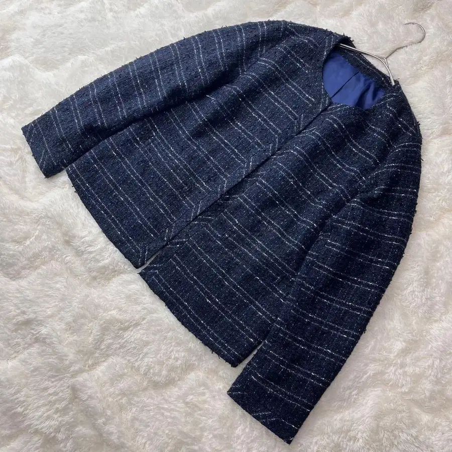 새상품급 Wacoal 트위드 자켓 네이비 긴팔 네이비 자켓 M