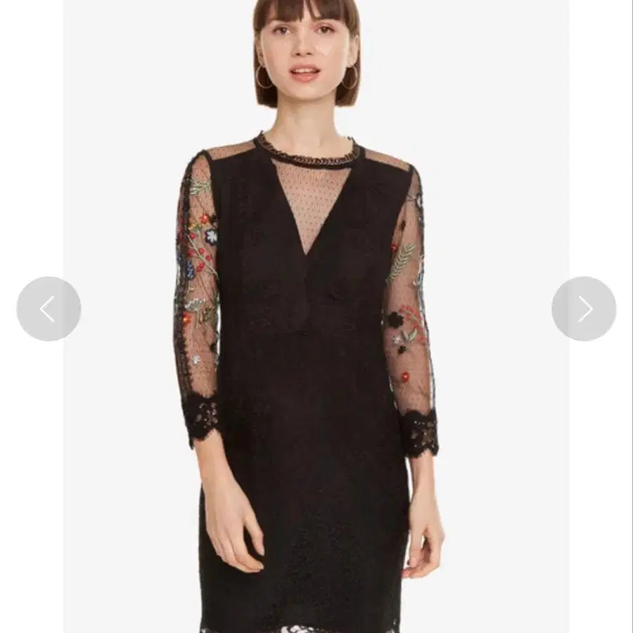 블랙 자수 장식 미니 드레스 레이스 원피스 데시구알 34 XS~S