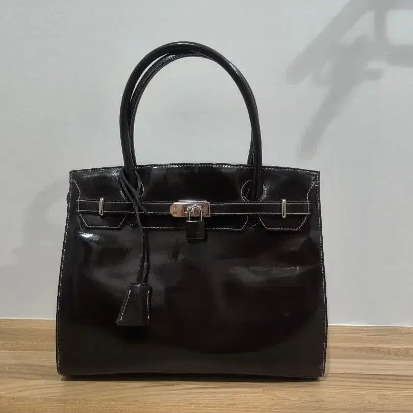 하마노 핸드백 에나멜 다크 브라운 황제 어용