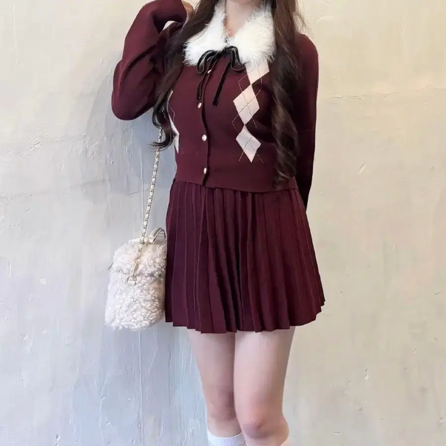 OLIVE des OLIVE 퍼 티펫 포함 아가일 니트 상하의 세트