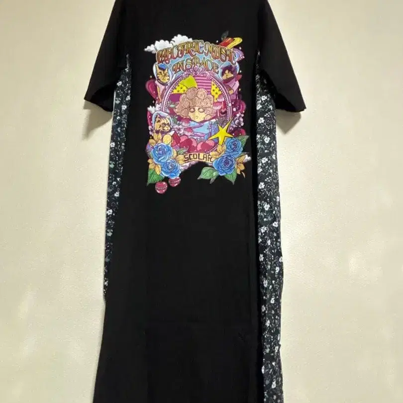 스칼라 우주 고양이와 스칼라 쨩 미니 꽃무늬 절개 원피스