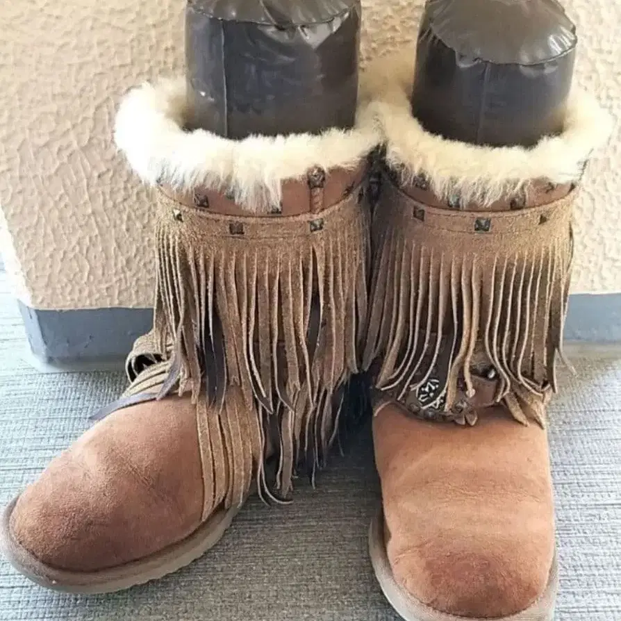 레어템 쿨라브라 프린지 참 스터드 무스탕 부츠 브라운 9 24.5~25.0