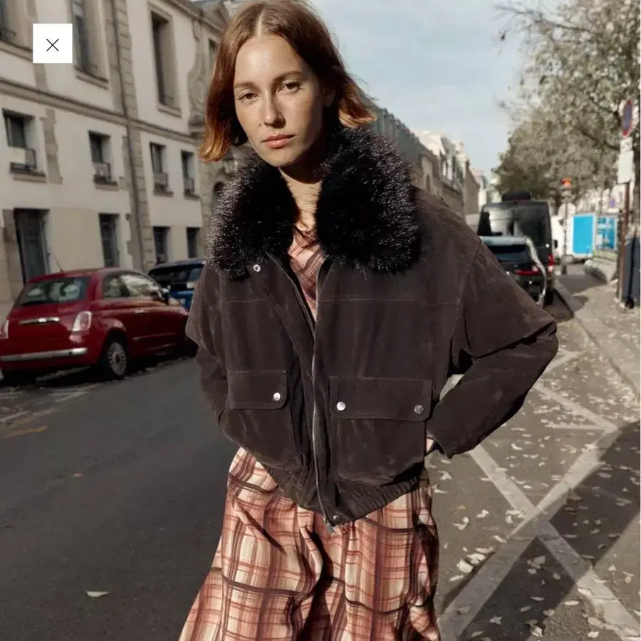 ZARA 자라 인조 모피 라펠 오버 사이즈 봄버 자켓 브라운