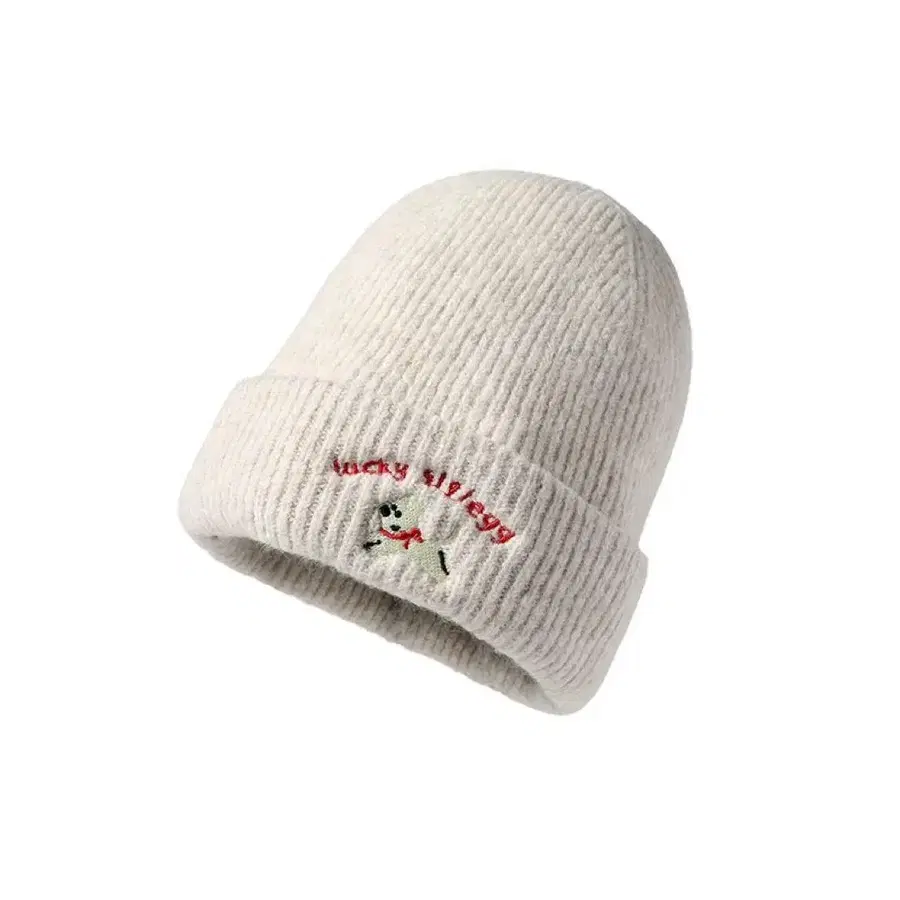 화이트 니트 모자 자수 디자인