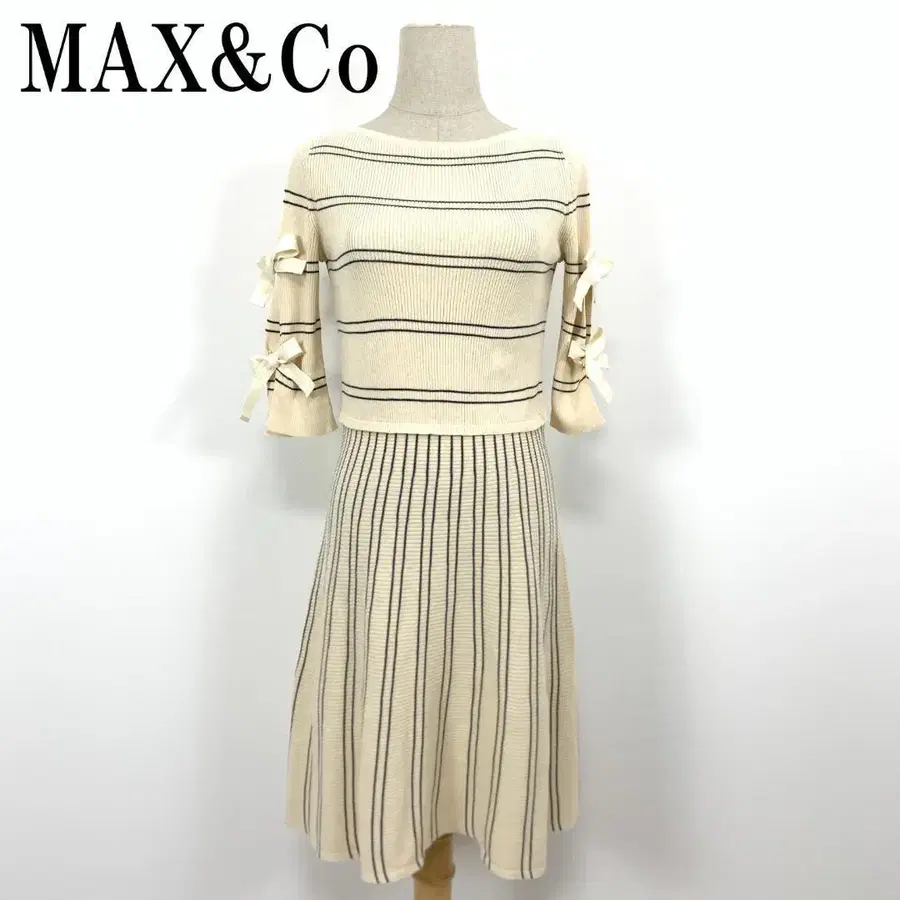 자동 번역되었어요. 원문보기MAX&Co 보더 스트라이프 절개 디자인 끈 리본 코튼 100%
