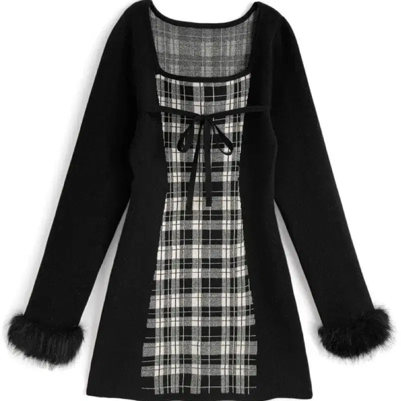 GRL 체크 무늬 퍼 리본 니트 원피스[lt169]