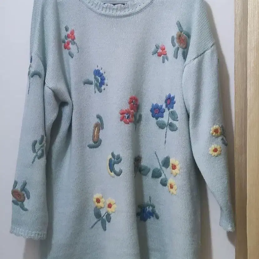 Italy Flower 꽃무늬 자수 니트 스웨터 긴팔