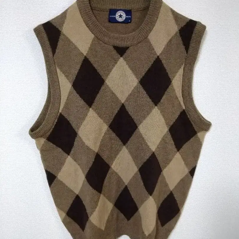컨버스 브랜드의 브라운 색상 울 베스트입니다.