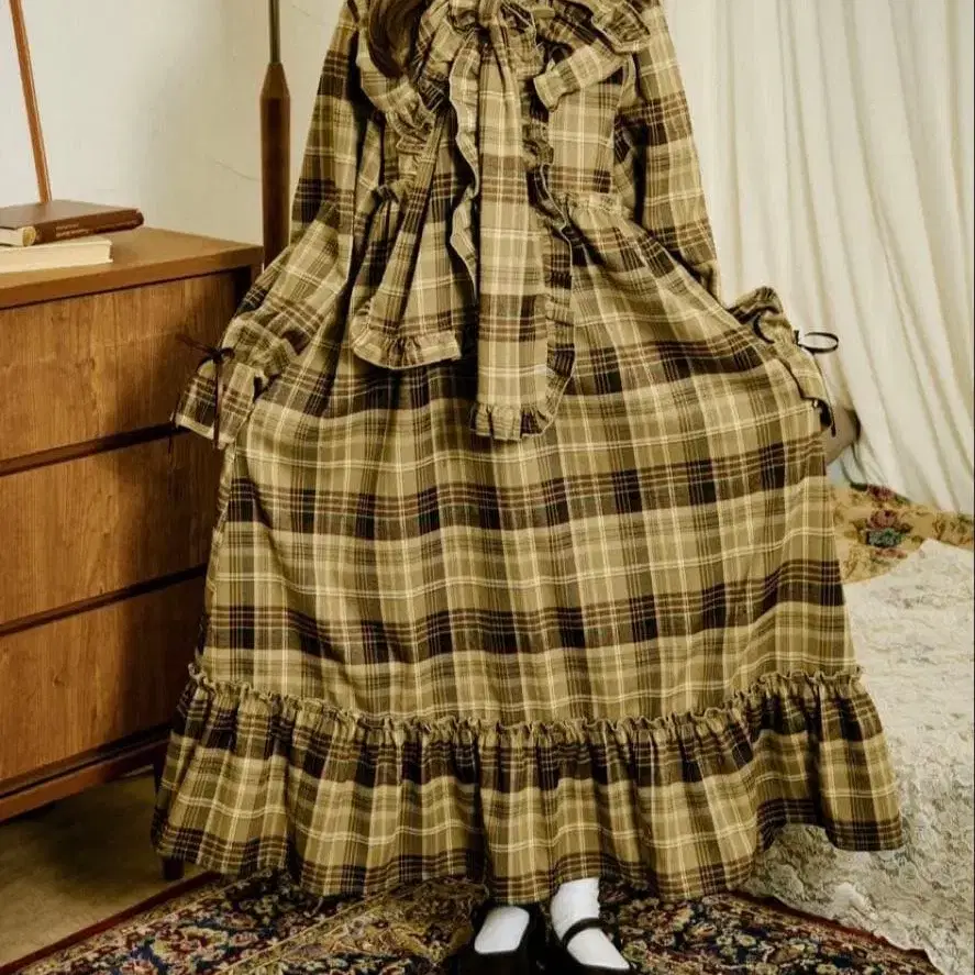 [쿠틸과 레트로] 2WAY 프릴 체크 원피스 [S 사이즈]