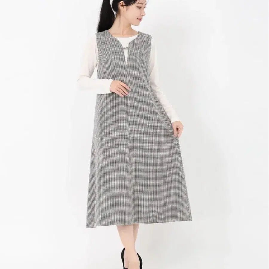 클래시컬한 표정이 매력적인 하운드투스 체크 패턴과 부드러운 질감의 풀룩 트윌을 사용한 오버롤 스커트.