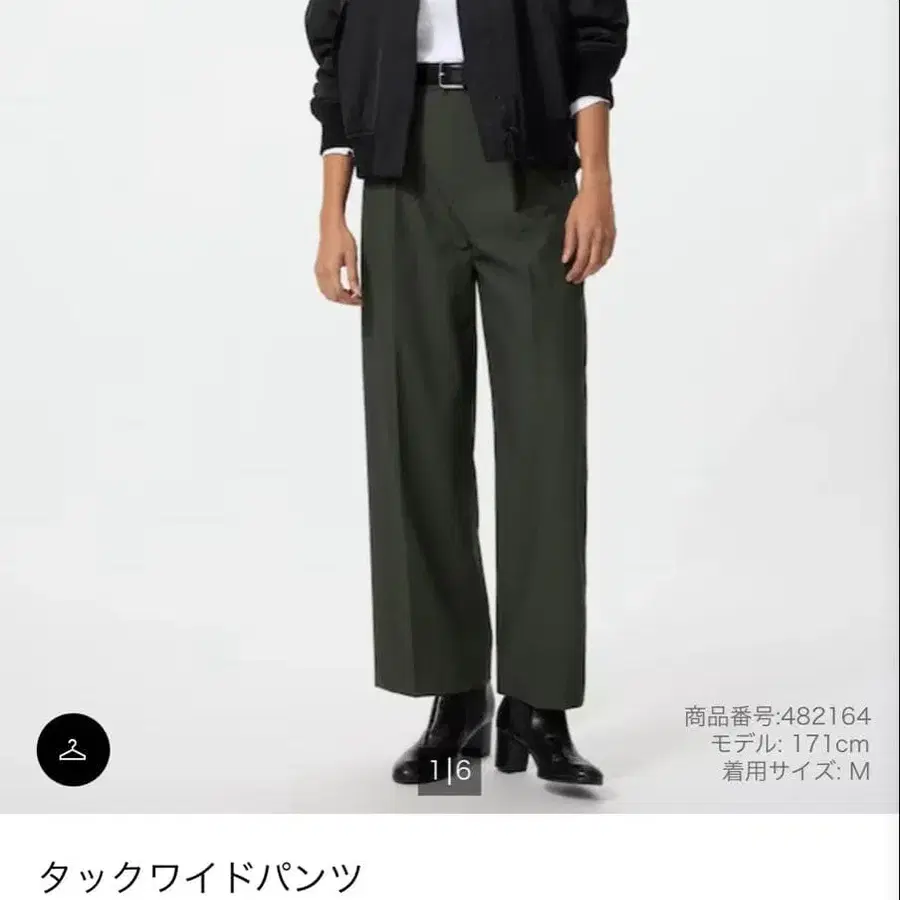 UNIQLO 턱 와이드 팬츠 S 다크 그린 카키