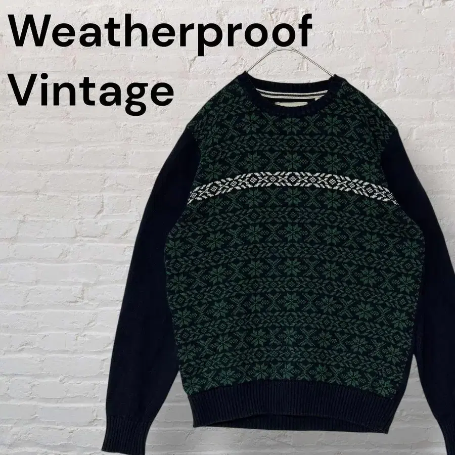 Weatherproof 노르딕 무늬 코튼 니트 M 네이비