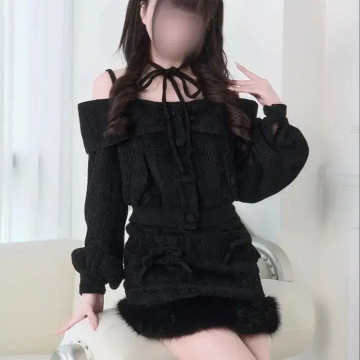 BunnyLis NoGenki 트위드 오프숄더 자켓 세트