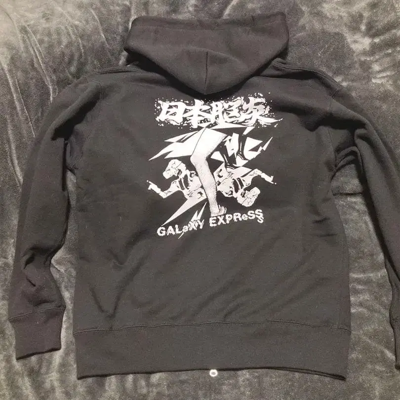 일본뇌염 후드 지퍼 파카 XL 사이즈 백 로고 두꺼운 원단 셔츠 블랙