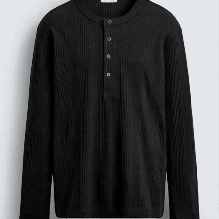 ZARA 코튼 블렌드 헨리넥 티셔츠 블랙 완판템
