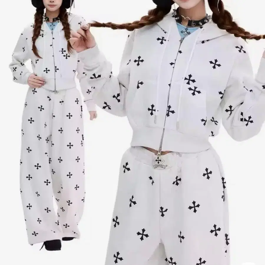 PBB 크로스 프린트 맨투맨 투피스 셋업