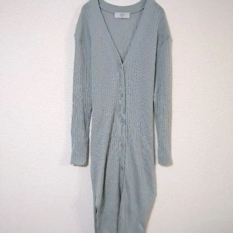 슬로브 이에나의 연한 그린색 (그레이색에 가까움) 롱 가디건입니다.