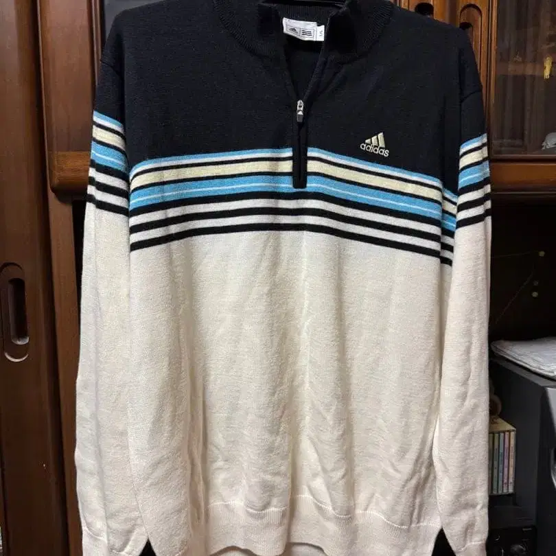 adidas 하프 지퍼 스웨터 블랙 화이트 블루