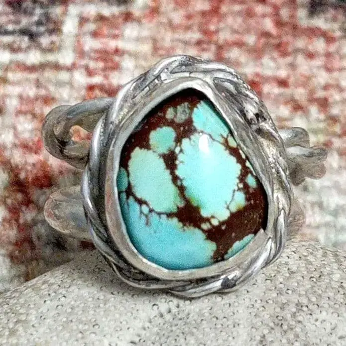 애리조나 터콰이즈 브라운 웹 실버 925 반지