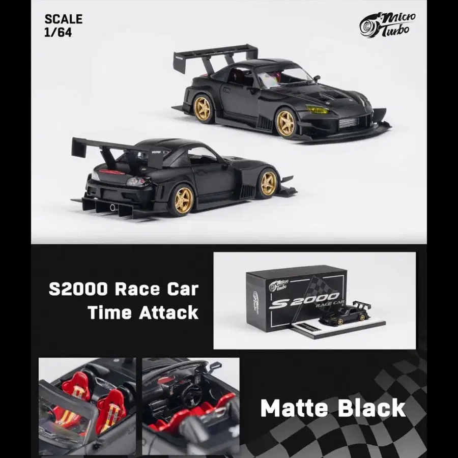Micro Turbo 1/64 혼다 S2000 레이스카 매트 블랙