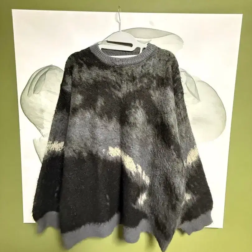 [ 완판템 ] SERACE 루즈 실루엣 추상 샤기 니트 블랙 L