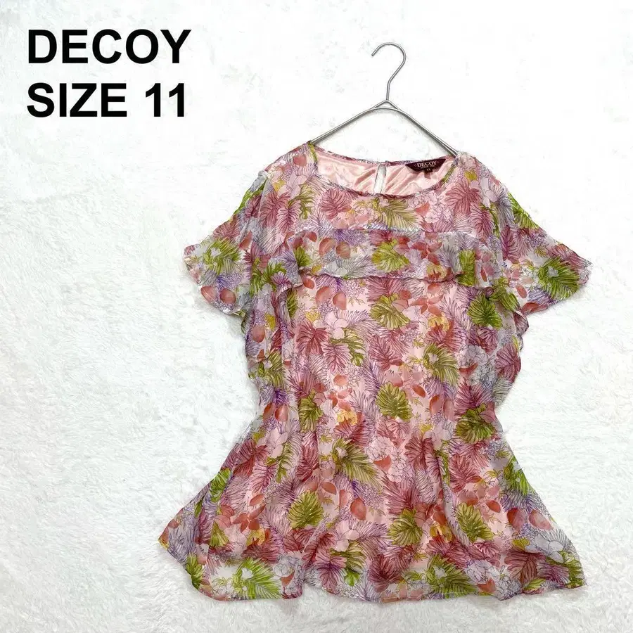 꽃무늬 쉬폰 블라우스 실크 100% 프릴 보타니컬 플로럴 반팔 시어 고급 엘레강트 성숙/러블리 페미닌 청순