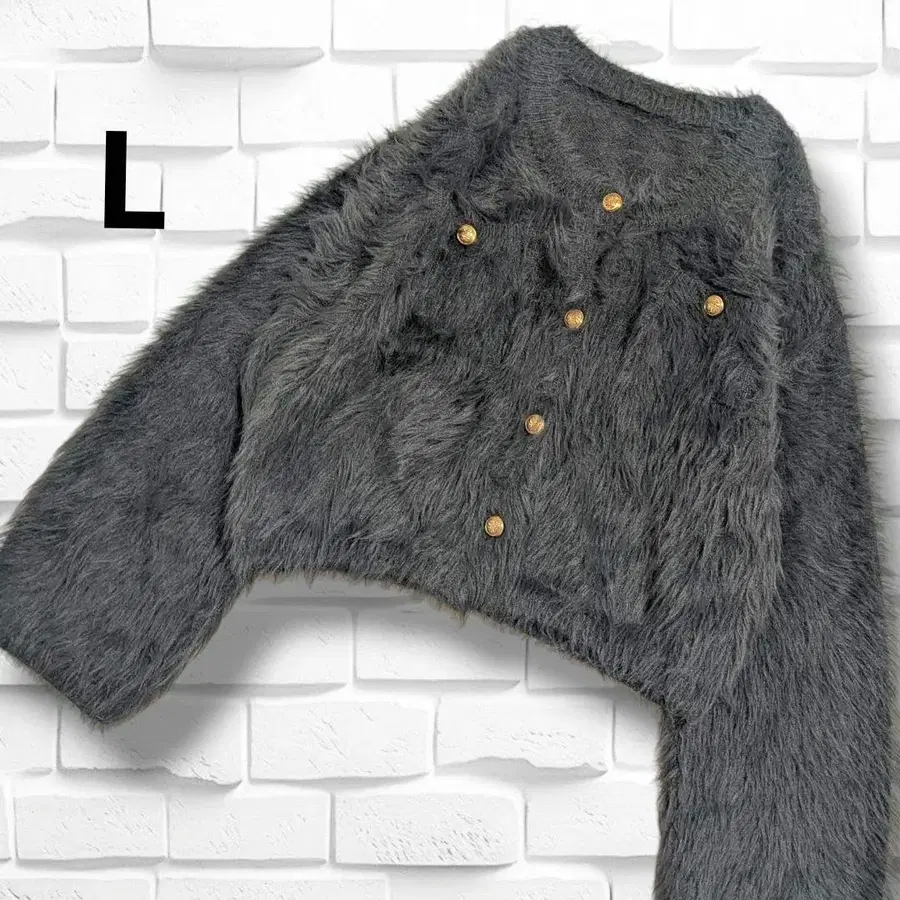 [새상품급] 루엘레 골드 버튼 샤기 니트 가디건 차콜 그레이 L