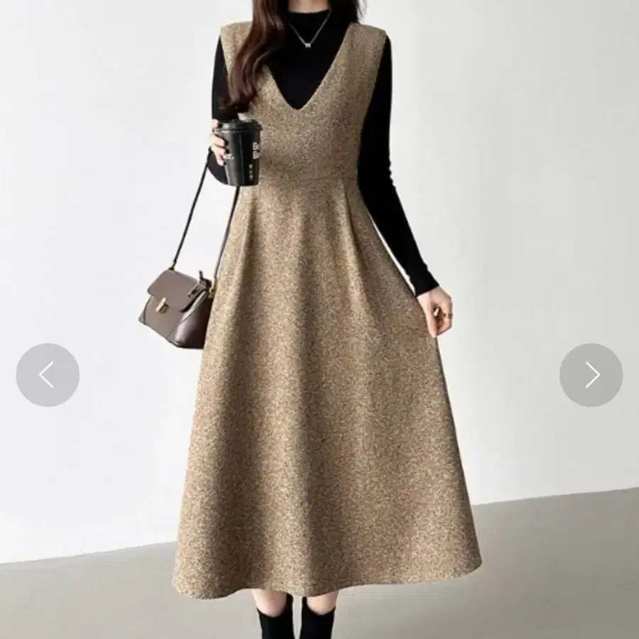 컨디션 최상 cocomomo 슬리브리스 원피스 트위드 베이지 브라운