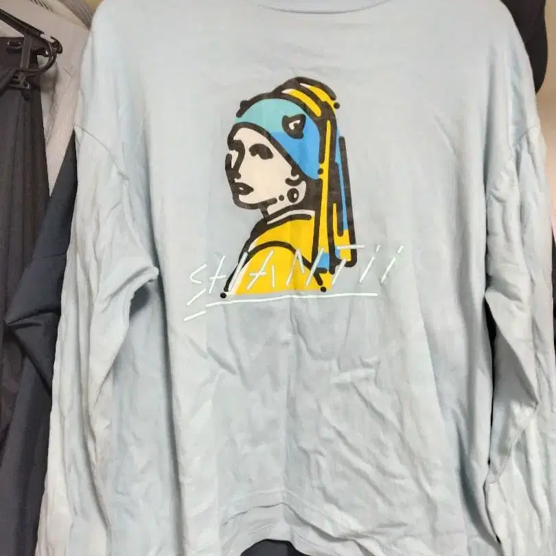 파란색 긴팔 티셔츠, 여성 초상화 디자인, M 사이즈, 코튼 소재. - 디자인: 파란색 긴팔 티셔츠에 여성 초상화풍 프린트 - 사이즈: M - 소재: 코튼 방문해 주셔서 감사합니다.