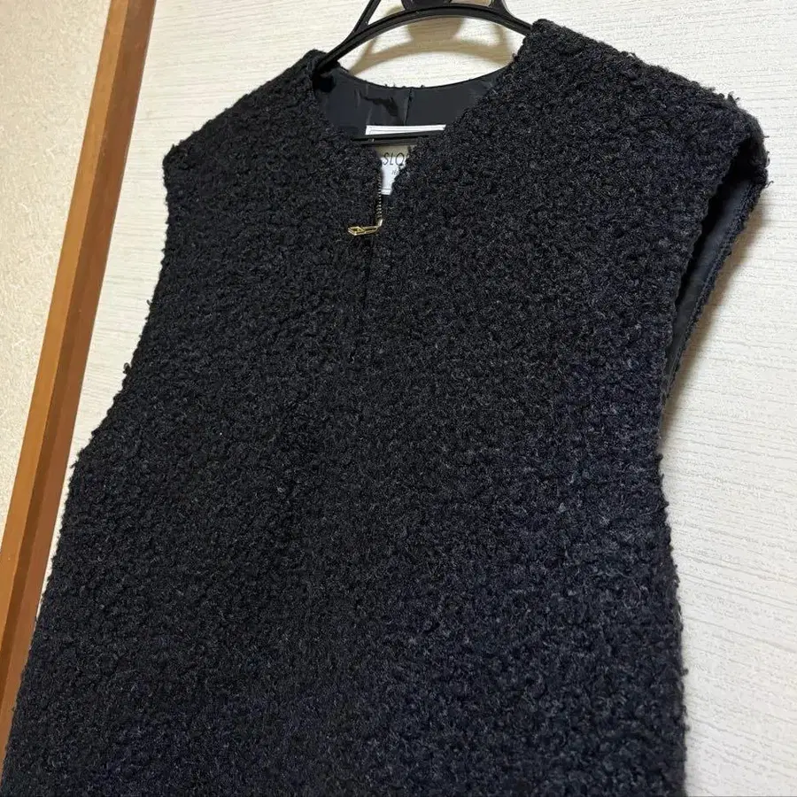 슬로브 이에나 블랙 보아 더블 지퍼 롱 베스트