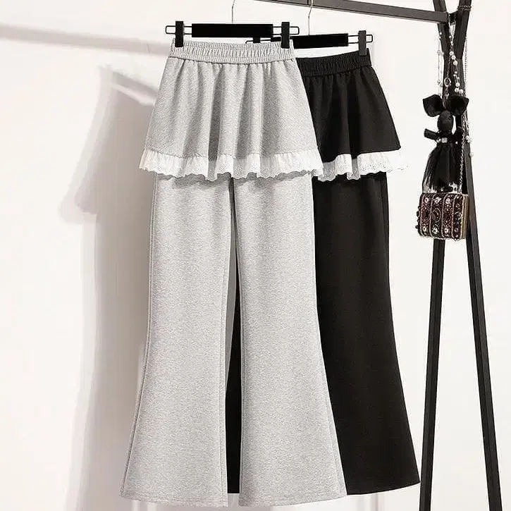 새상품 빅 사이즈 가을/겨울 밑단 레이스 맨투맨 팬츠 스커트풍 페플럼p