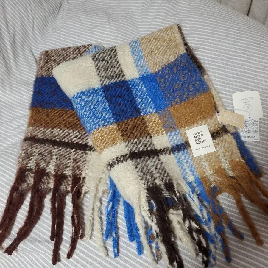체크 무늬 정전기 경감 복슬복슬 스톨