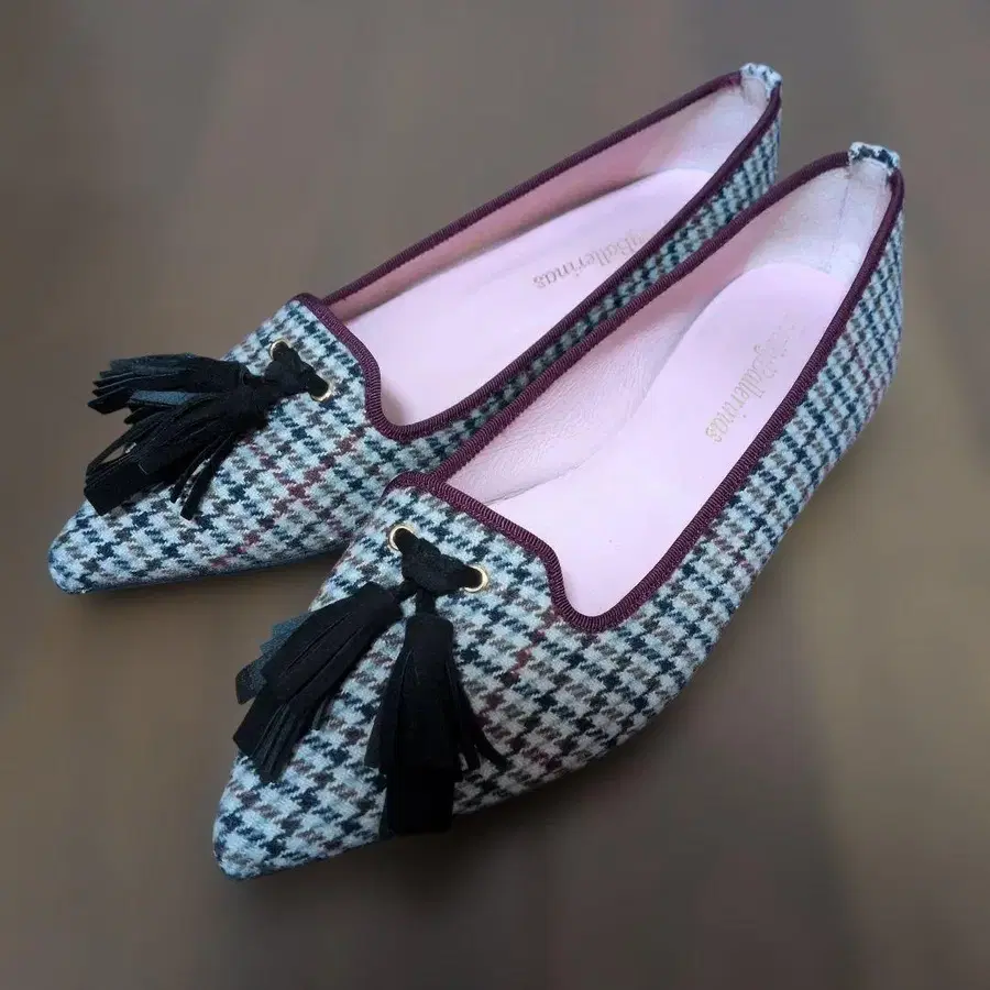 자동 번역되었어요. 원문보기Pretty Ballerinas의 태슬 장식 체크 무늬 플랫슈즈, 세련된 디자인.