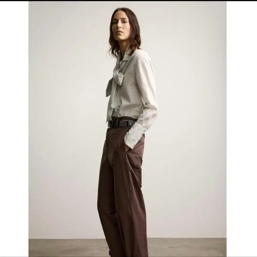 ZARA 체크 무늬 리본 블라우스 셔츠