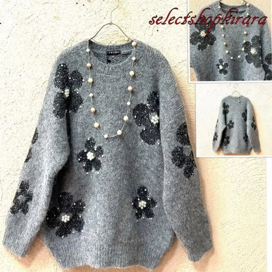 ◎ 대호평의 루즈한 사이즈 ☆ 신축성 ◎ 부드럽고 포근한 ☆ 스팽글 & 펄 플라워 모티브 니트 풀오버가 입고되었습니다.