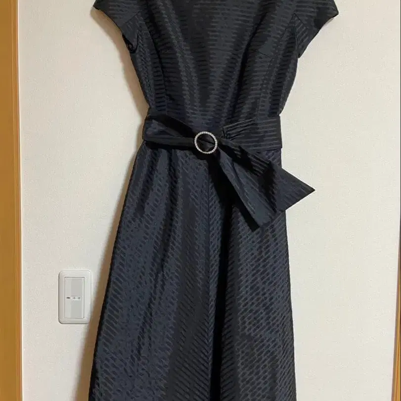블랙 스트라이프 패턴 드레스와 자켓 세트 멜로즈 MELROSE