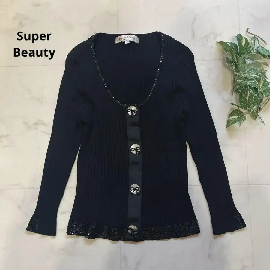 컨디션 최상 슈퍼뷰티 리브 니트 가디건 사이즈 40 블랙 비즈