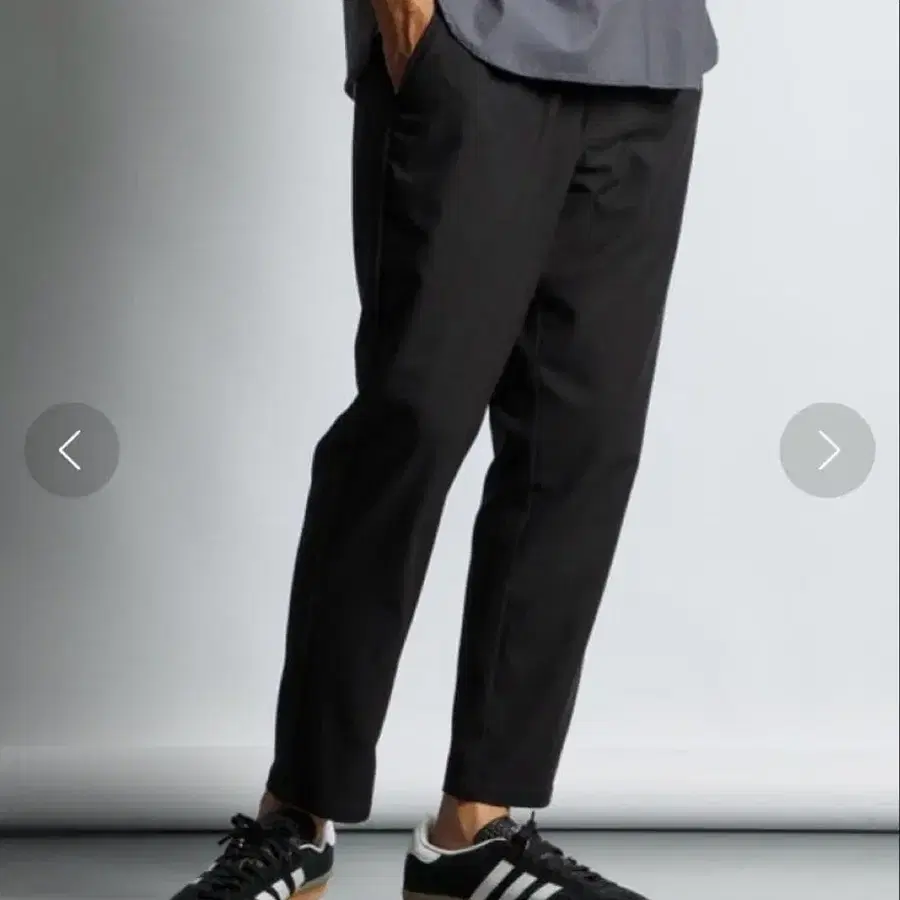 '편안함을 추구한 깔끔한 슬랙스' [원단] 빗질한(소모) 울과 같은 질감을 가진 폴리에스터 소재를 사용했습니다. 리얼 울 원단과 달리, 내추럴한 스트레치가 있어 편안한 착용감을 제공합니다. 또한, 폴리에스터의 강점인 이지케어도 매력 중 하나입니다. [디자인 디테일] 깔끔한 슬랙스를 베이스로, 허리 부분을 360° 밴딩(개더) 사양으로 마무리한 [이지 슬랙스 모델]을 채용했습니다. 벨트 없이 편안한 사양에 더해, 적당한 여유가 있는 루즈 테이퍼드 실루엣으로 스트레스 없는 디자인입니다. 겉보기에는 캐주얼해 보이지 않으면서, 착용감은 캐주얼한, 그런 장점만 모은 하의입니다. 8~9분 길이. 루즈 테이퍼드 핏.