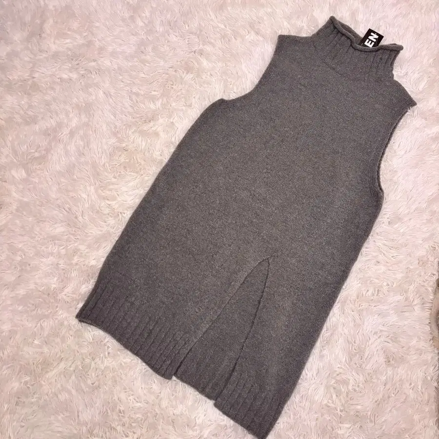 택 포함 새상품 그레이 슬리브리스 니트 원피스 터틀넥 M 사이즈 루즈핏