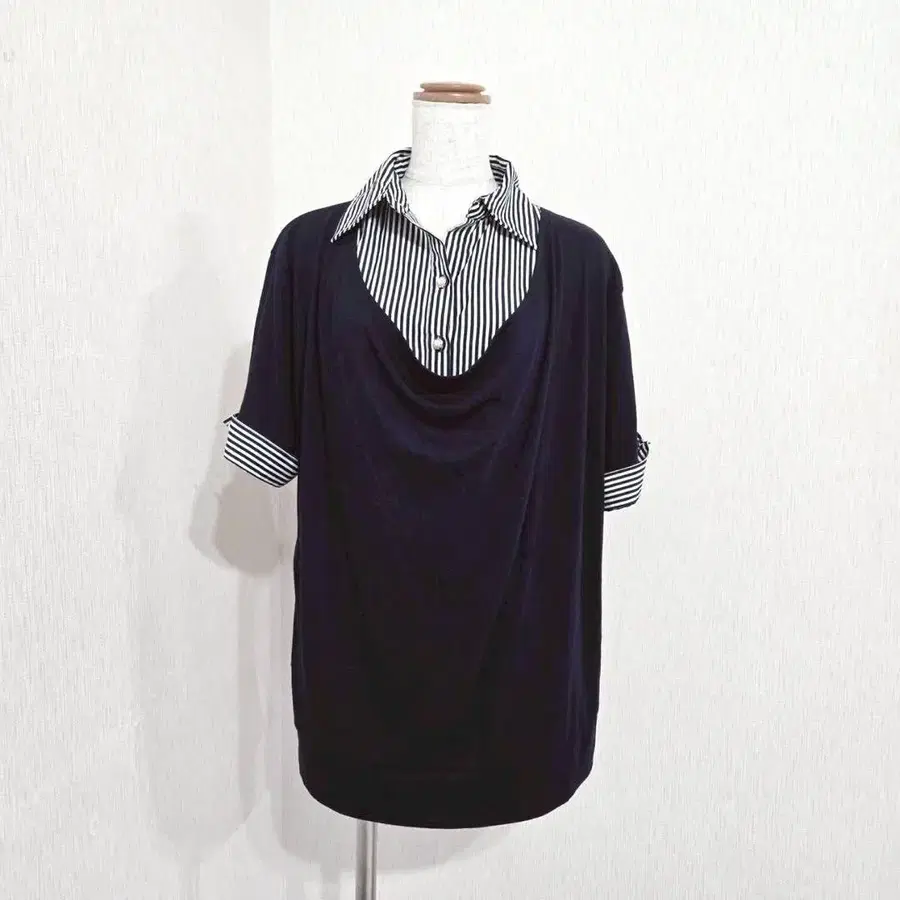 헬시 카렌 4L 페이크 레이어드 티셔츠 네이비 스트라이프