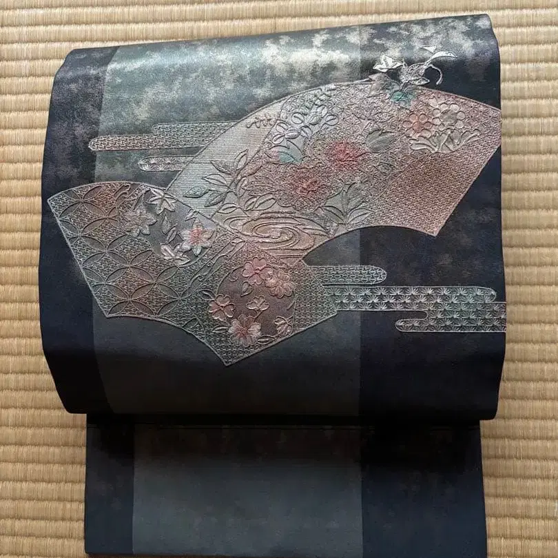 나고야 오비 순수 실크 산두 무늬 미사용