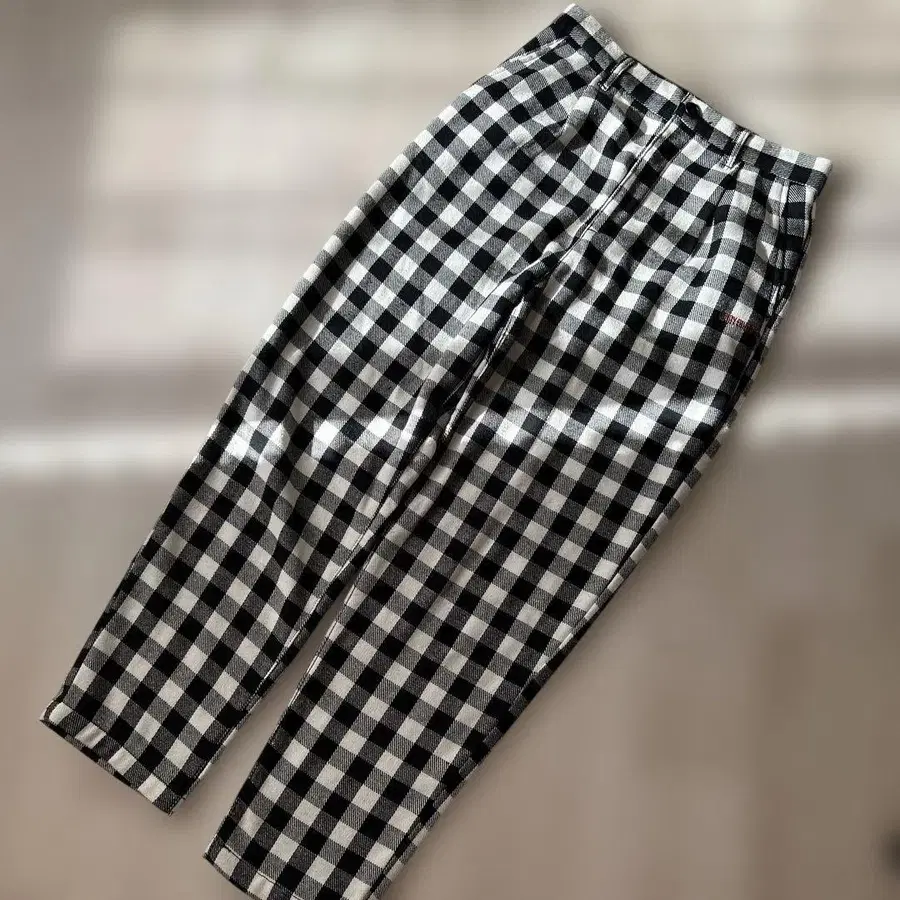 자동 번역되었어요. 원문보기블랙과 화이트 체크 무늬가 특징인 캐주얼 팬츠.