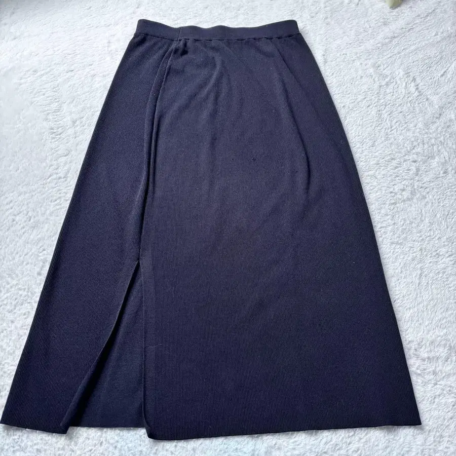 NOBLE 블랙 리브 니트 플레어 스커트 슬릿