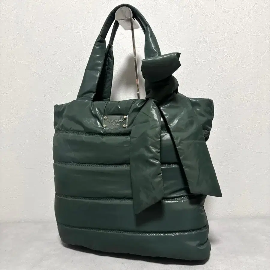 새상품급 케이트 스페이드 토트백 나일론 그린 리본 표범 무늬